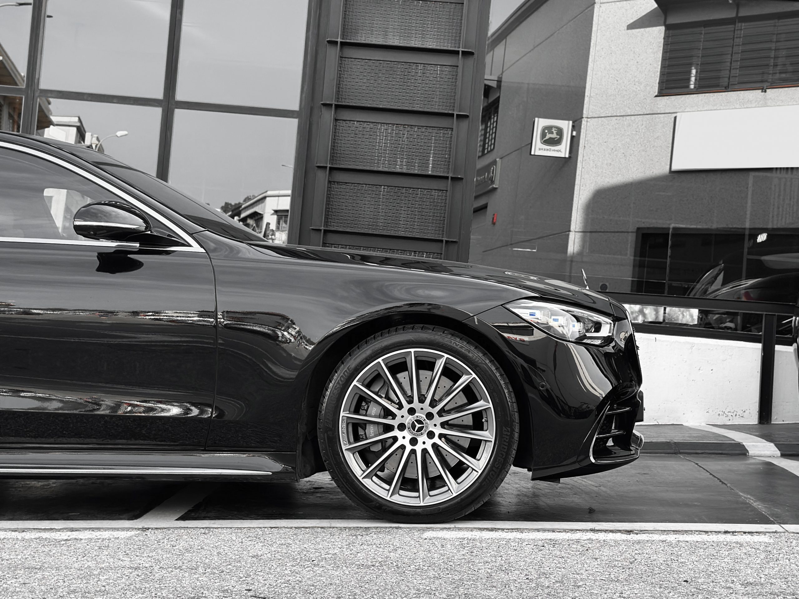 – 20″ AMG alloy wheels in multi-spoke design and Himalayan Gray finish.