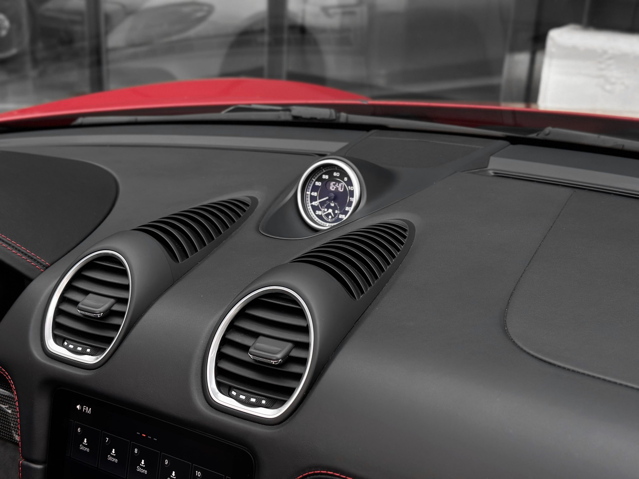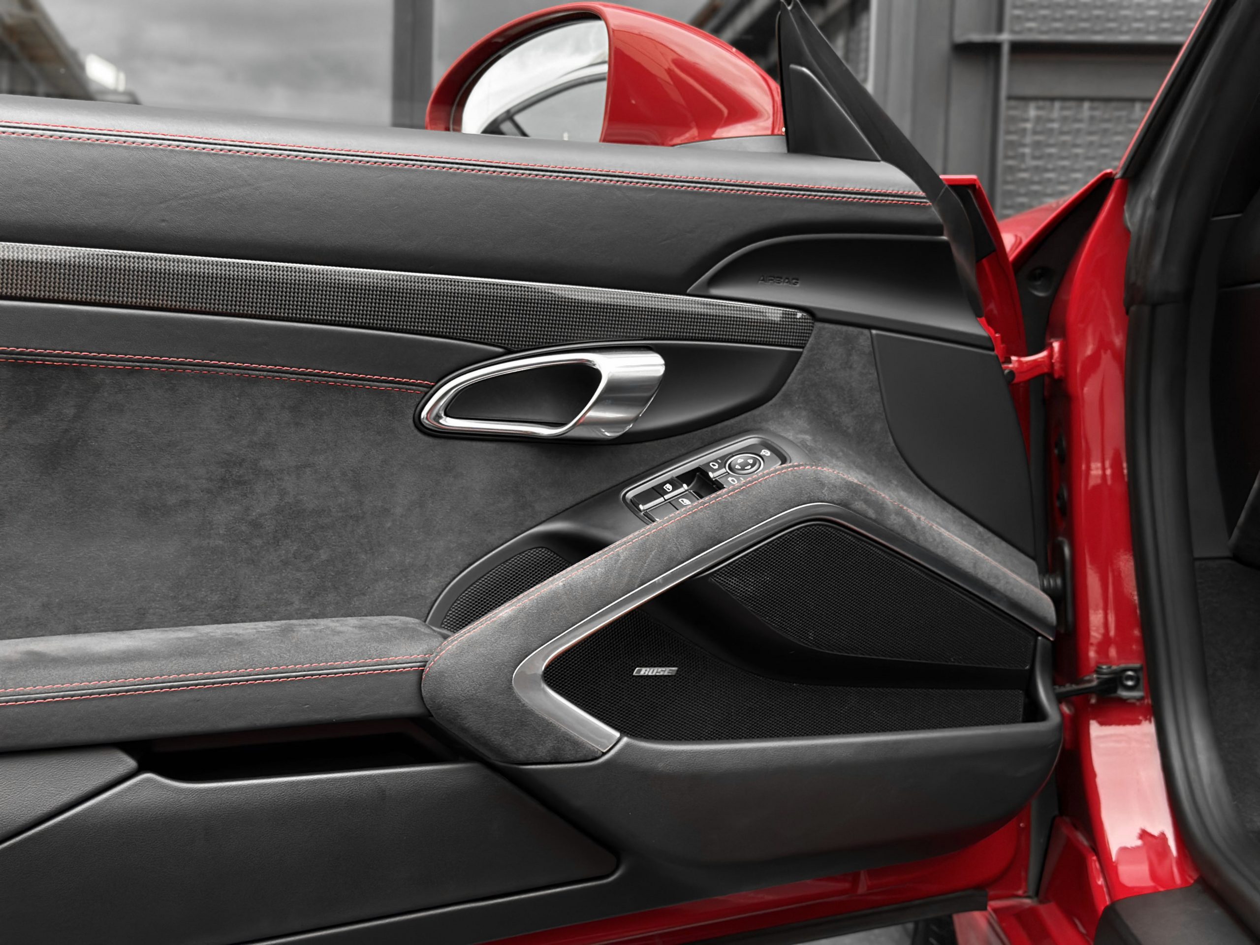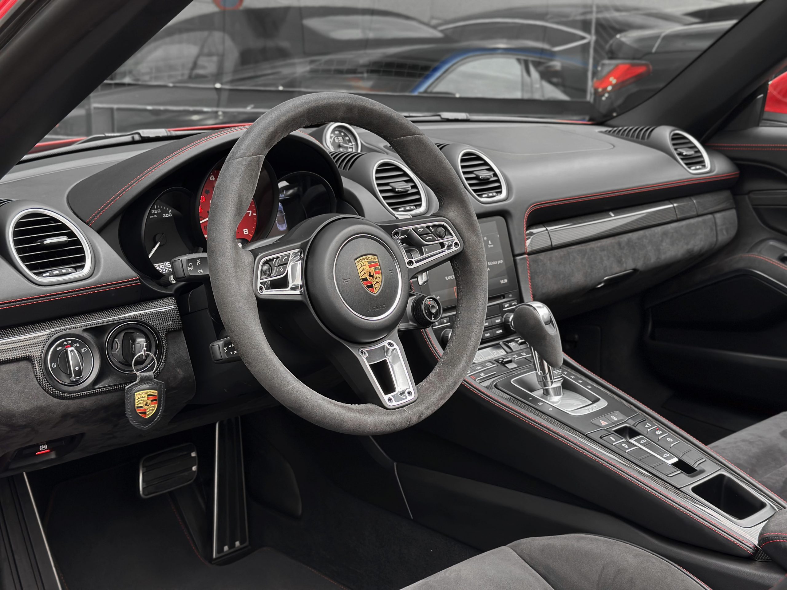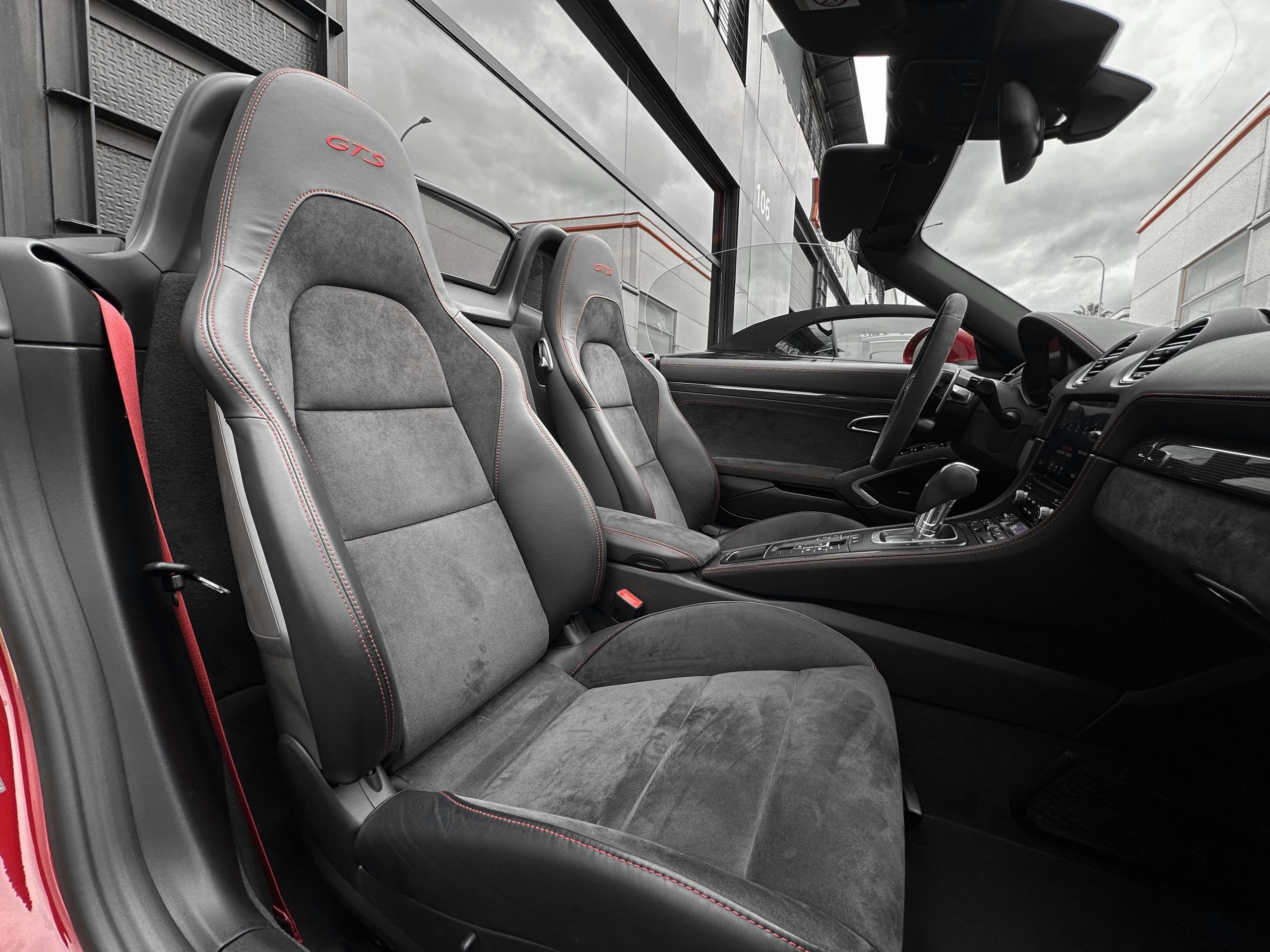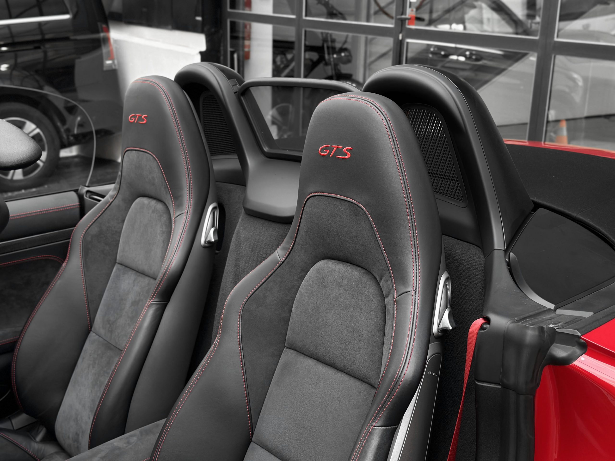 – Interior: GTS interior package in black leather/Alcantara with red stitching.