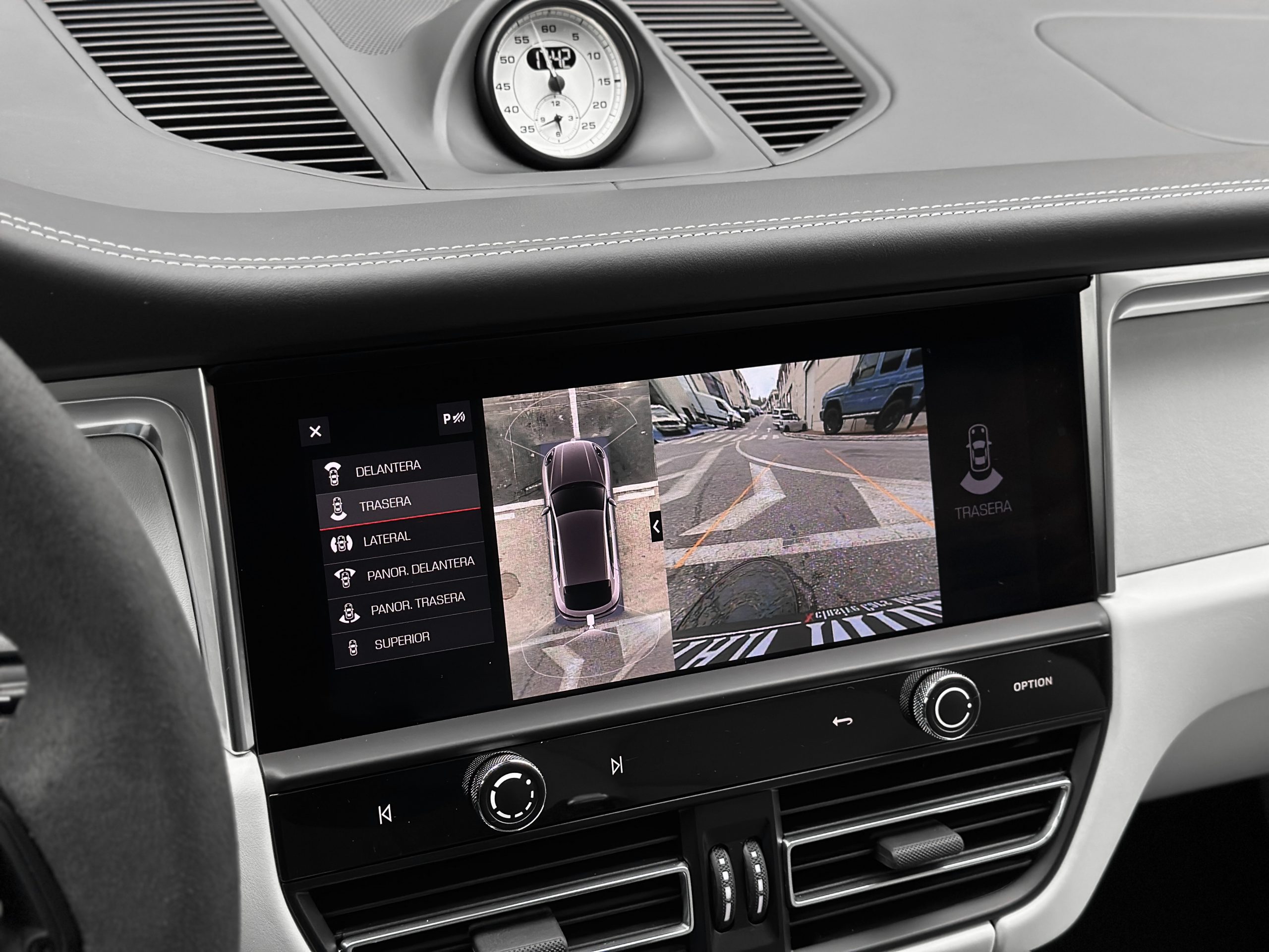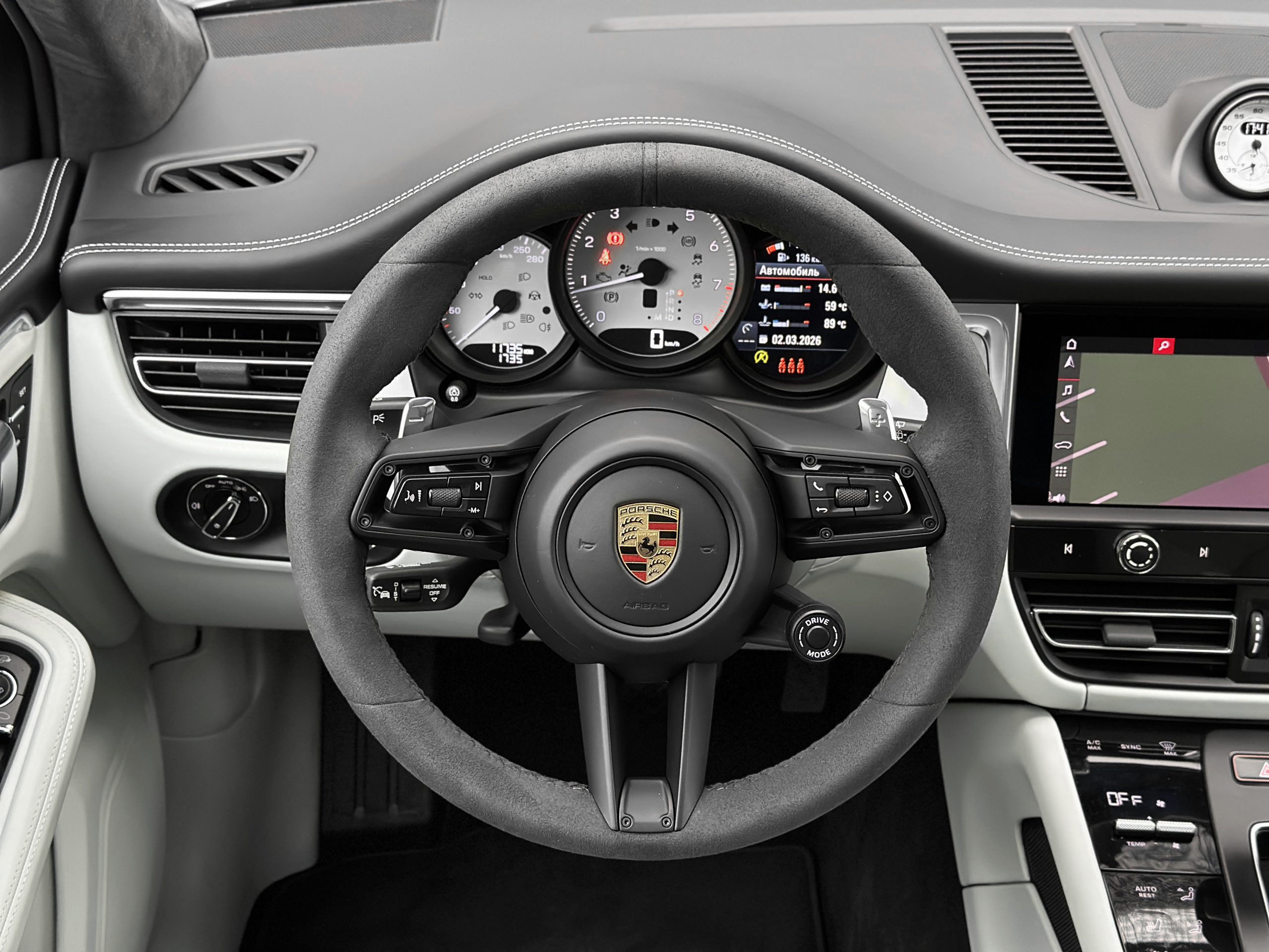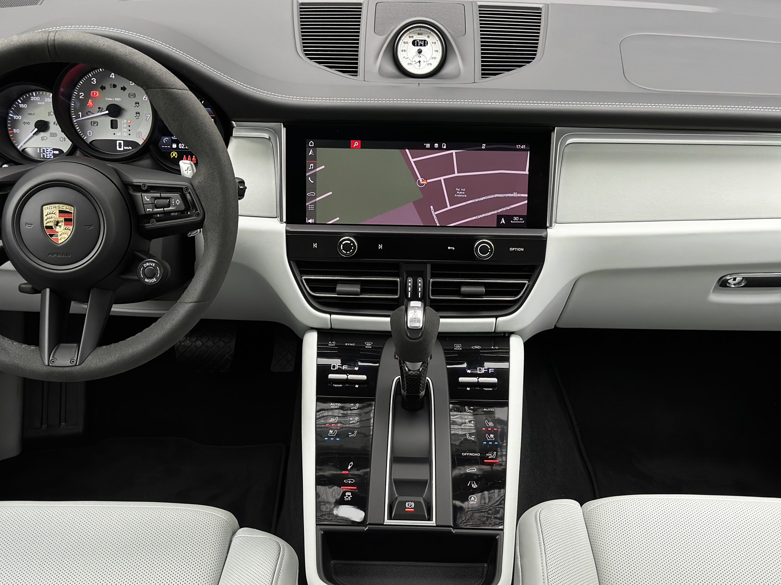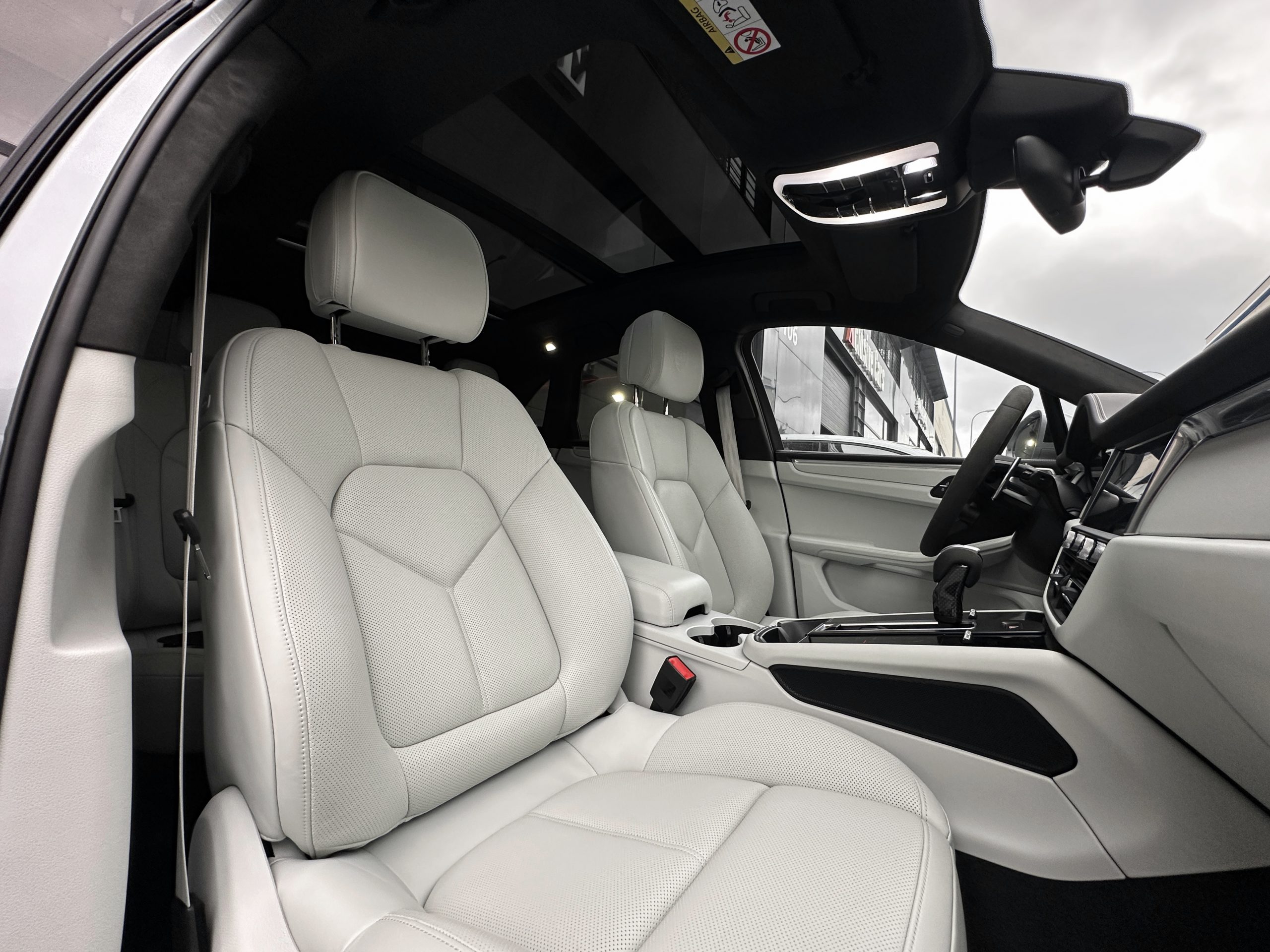 – Porsche crest on the front headrests.