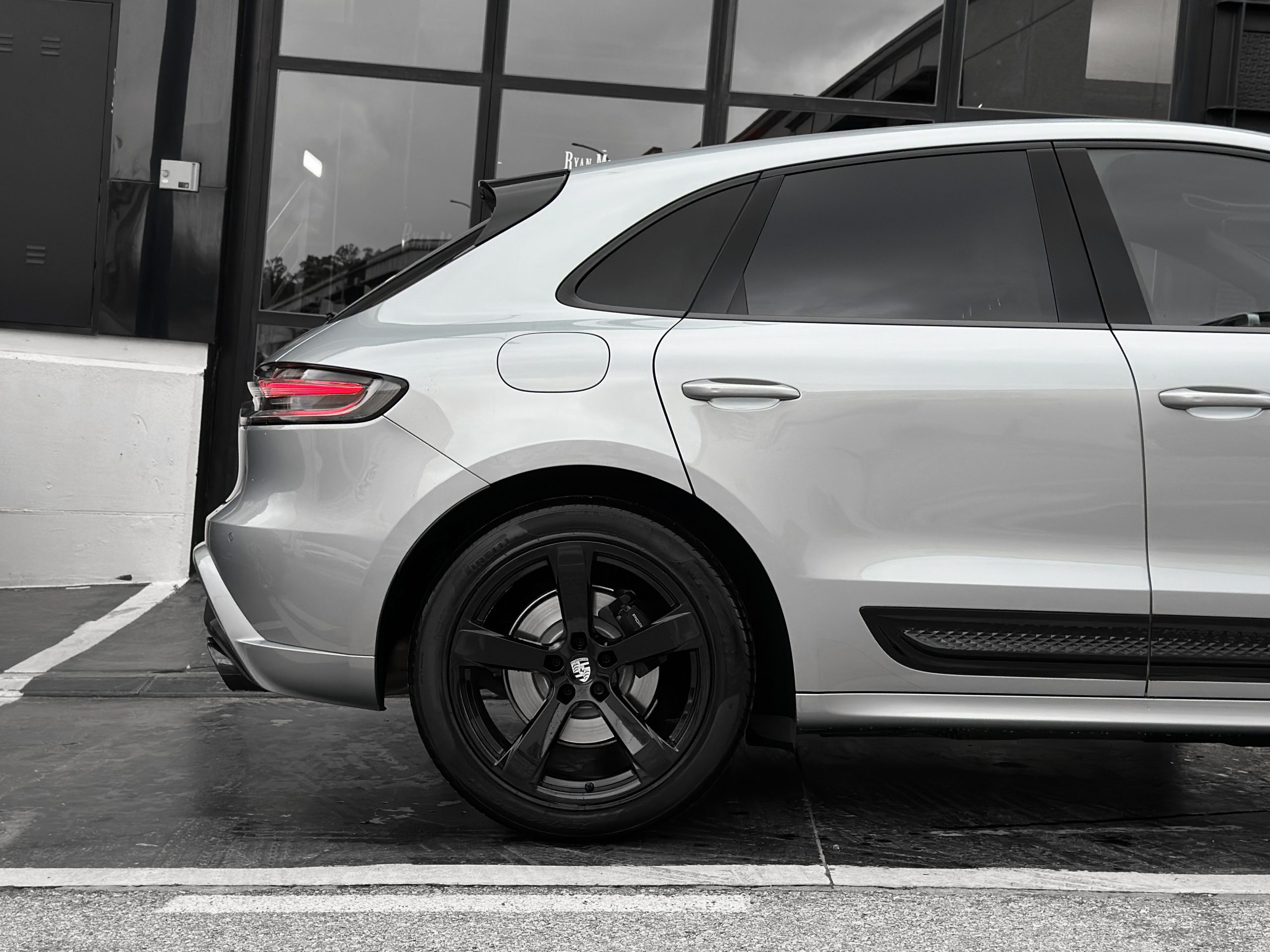 – 20″ Macan Sport wheels with a high-gloss black finish.