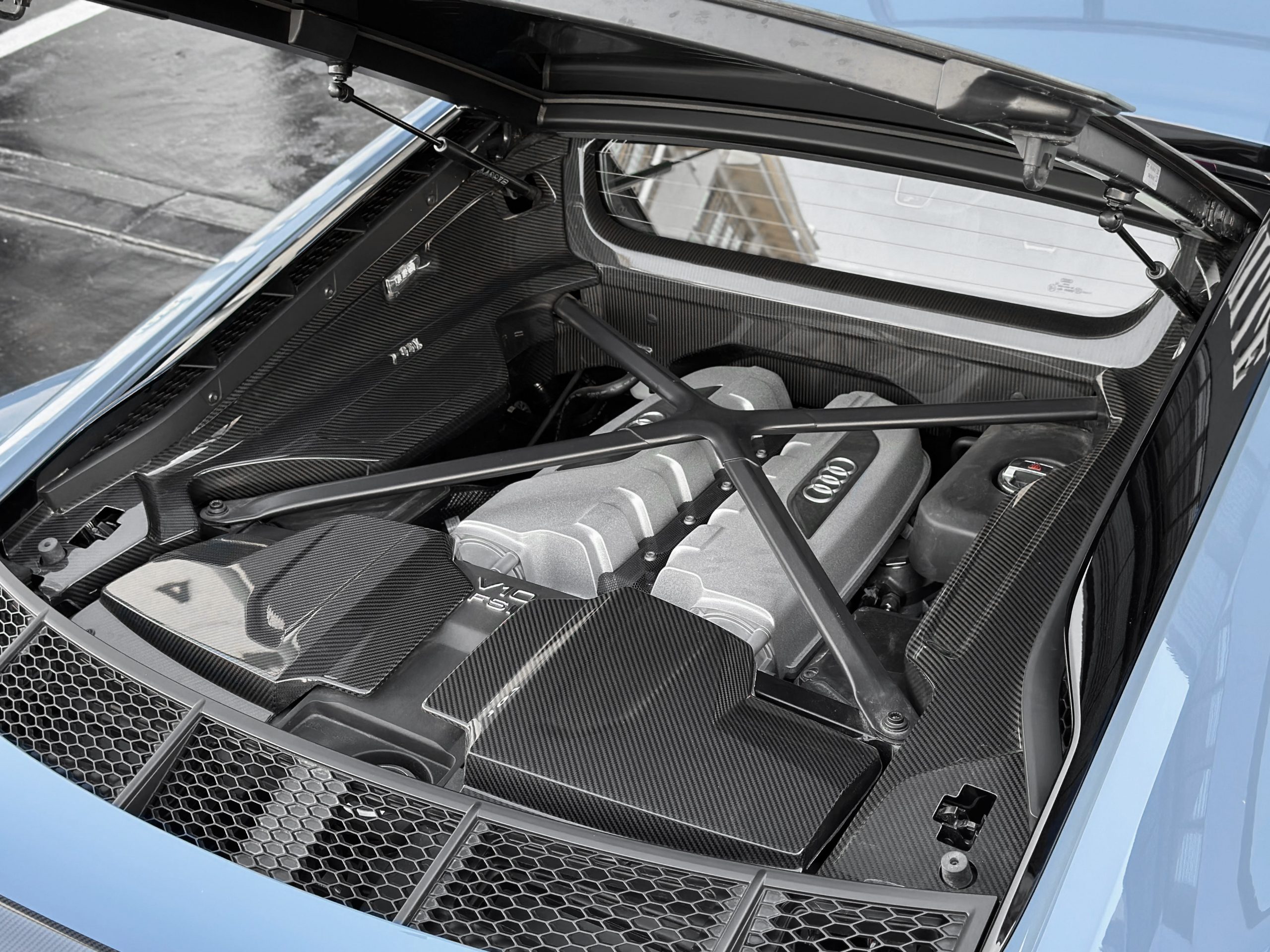 – Cubierta del compartimento del motor en fibra de carbono.